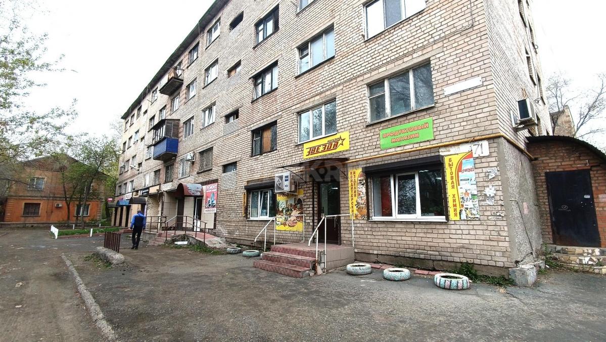 Текст объявления: Продам встроенное нежилое помещение на 1 этаже многоквартирного жилого дома. В помещение имеется отдельный вход с ул. Станиславского. В помещение располагается продуктовый магазин, имеются постоянные клиенты, хороший трафик, возможно передача готового бизнеса новому собственнику. В помещении имеется отдельное складское помещение, зал для приема клиентов, сан.узел, входная группа. Есть постоянный продавец, организован торговый процесс. Помещение готово к работе без остановки рабочего процесса. Возможно организация иного вида деятельности, ввиду удачного расположения на первой линии ул. Станиславского. Общая площадь помещения 67,2 кв.м, один взрослый собственник. Возможна быстрая продажа. Все вопросы возможно обсудить по телефону, не упусти возможность приобретения готового бизнеса.