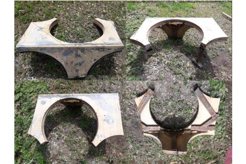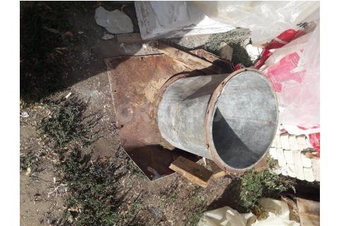 Бак для дымохода. Основание на две трубы. Диаметр 46см, высота 50см, раструбы труб местами проржавели...