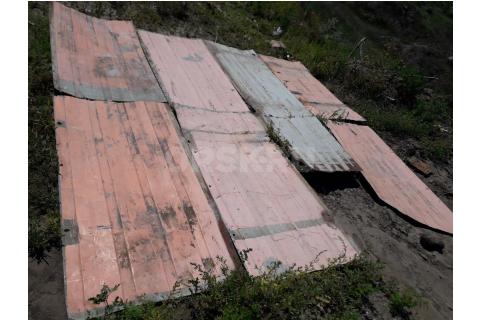 Профлист крашенный разрезан на разные отрезки по 36, 33, 30, 40, 40, 42, 44, 45, 45, 40, 39, 35,